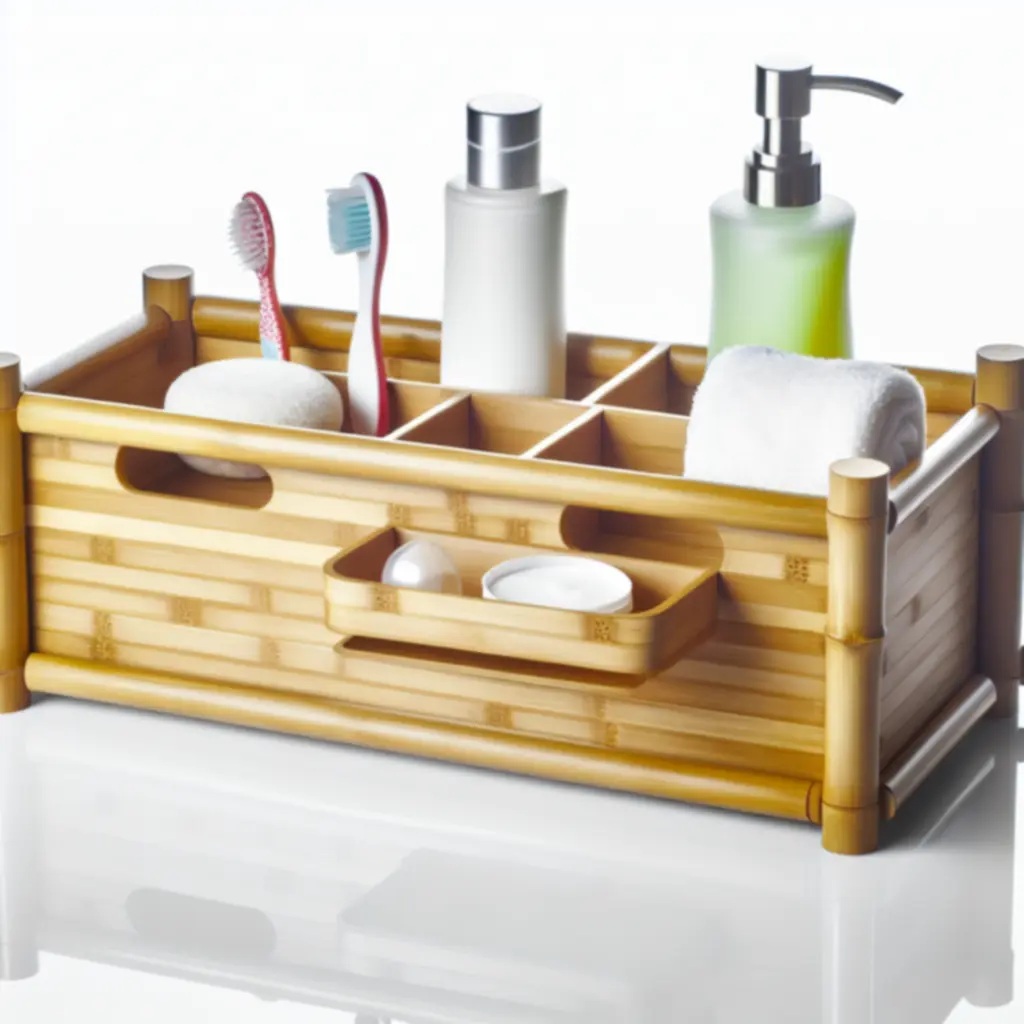 Organizer „Zen” z bambusa to ekologiczne rozwiązanie dla łazienki. Trzy półki na szampony i żele oraz haczyki na myjki i gąbki. Bambus jest naturalnie odporny na wilgoć i pleśń.